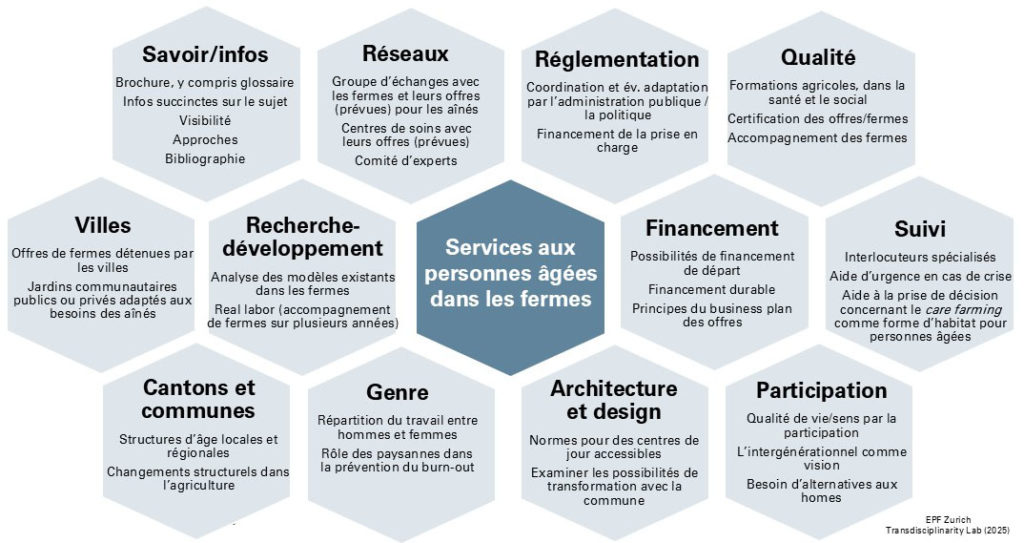 - Un projet de politique publique de l’EPF Zurich veut lancer le dialogue autour du « care farming» pour les aînés en Suisse ; une feuille de route a été rédigée à cet effet.