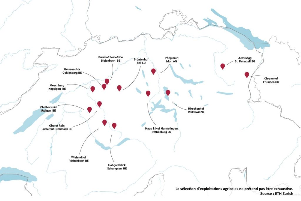 Dans le cadre de notre projet, nous avons identifié des exploitations pionnières dans ce domaine en Suisse (voir illustration 1). En fonction du contexte local, ces fermes ont commencé à mettre sur pied des offres et en partie également des concepts entiers qui s’adressent spécifiquement aux personnes âgées.